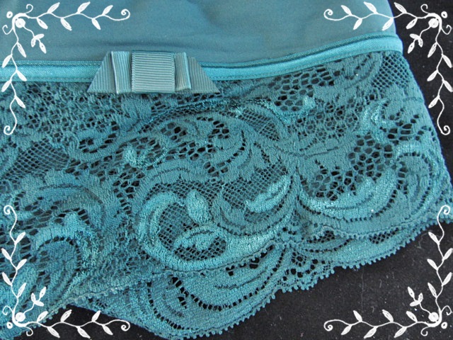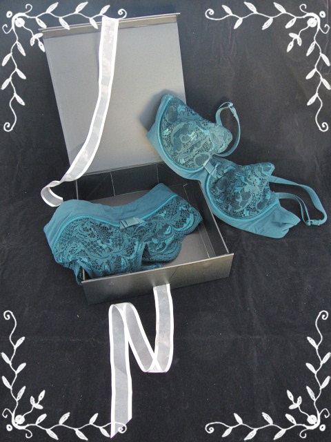 Cet ensemble se composait donc d’un soutien-gorge et d’une culotte de la marque LOU et de couleur vert émeraude. Entre nous les filles, JAMAIS je n’aurais été choisir cette couleur dans une boutique de lingerie! Et pourtant… depuis que je l’ai reçu, l’ensemble n’a pas dû voir très souvent le tiroir!!! 🙂